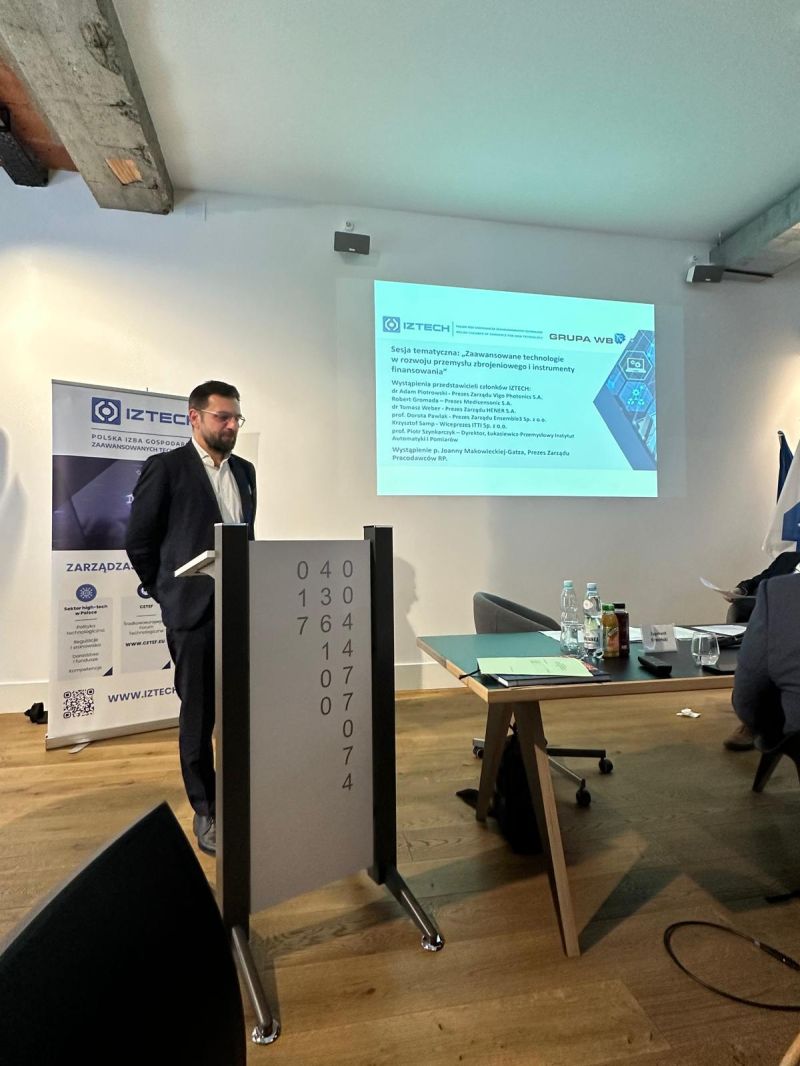 Główną częścią obrad posiedzenia Rady IZTECH była sesja tematyczna „Zaawansowane Technologie w rozwoju przemysłu zbrojeniowego i instrumenty finansowania”, która rozpoczęła się od prezentacji p. Piotra Wojciechowskiego, Prezesa WB ELECTRONICS S.A., na temat „Możliwości wykorzystania polskich firm prywatnych w produkcji uzbrojenia”.