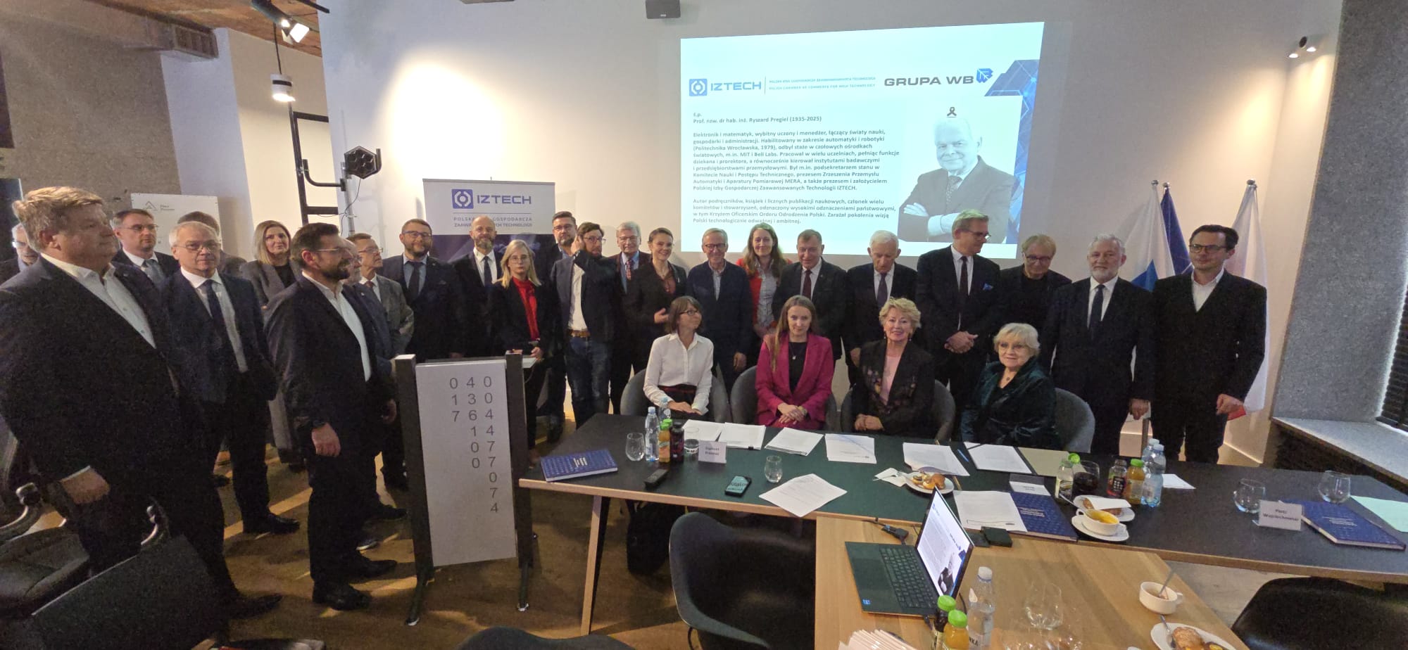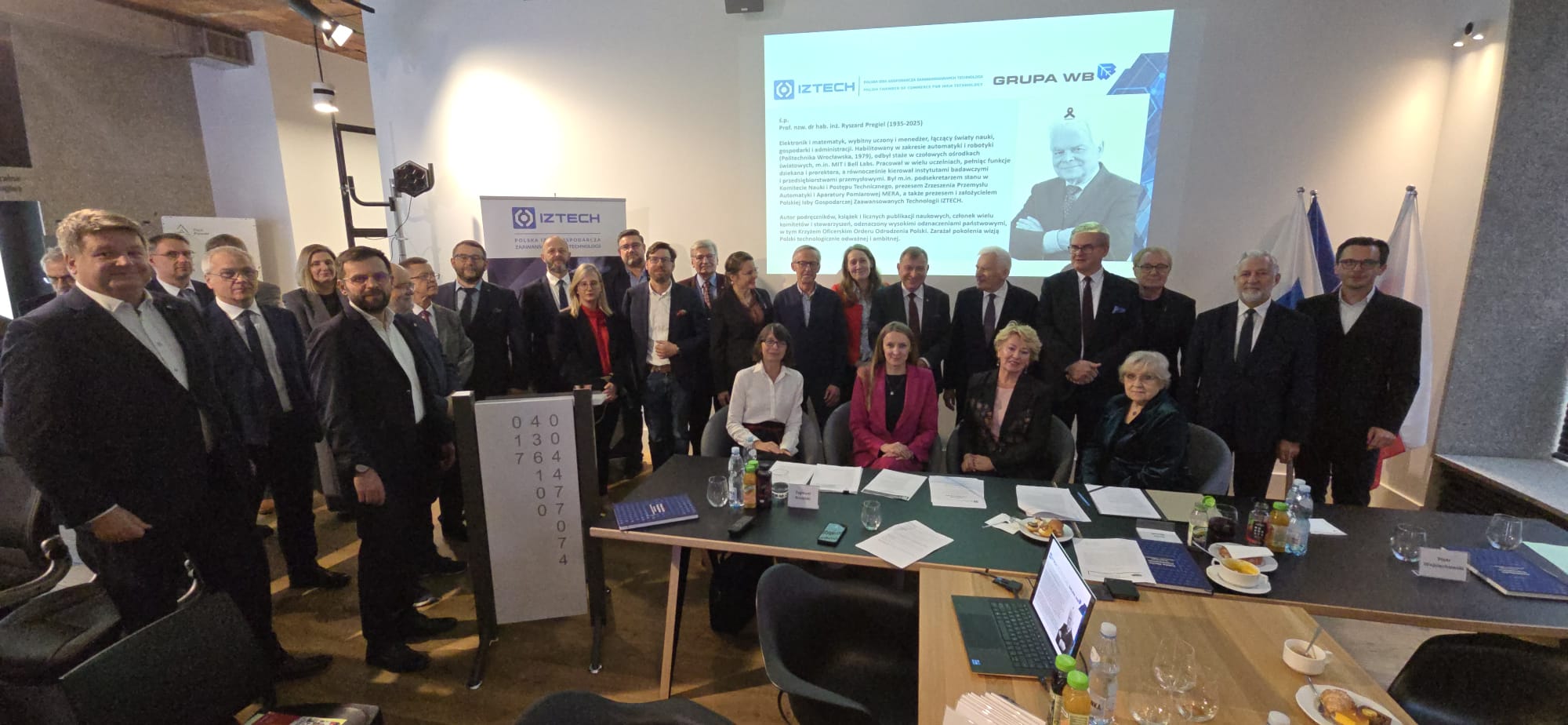 Odczytany został list pożegnalny od prof. Zbigniewa Śmieszka – Przewodniczącego Komisji Rewizyjnej Izby, a także swoimi wspomnieniami na temat tego wybitnego inżyniera i menadżera podzielili się uczestnicy spotkania: Prezes Ewa Mańkiewicz-Cudny, prof. Natalia Sobczak, dr Wojciech Wajda, Prezes Zarządu WASKO S.A, p. Andrzej Werkowski, p. Dyrektor Barbara Juszczyk, Łukasiewicz-Instytut Metali Nieżelaznych i dr Zygmunt Krasiński, Prezes Izby. Prof. Jerzy Buzek poinformował także o najnowszej publikacji wydawnictwa IZTECH: „Polska Nauka Przemysłowa. Technologie Kosmiczne i Satelitarne” ostatniego dzieła prof. Ryszarda Pregiela.